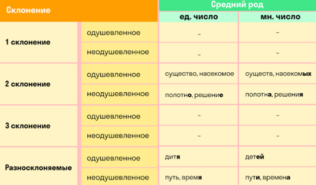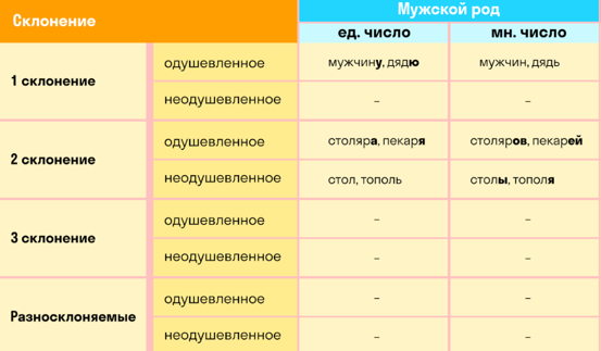 таблица окончание существительных в именительном падеже: единственное и множественное число