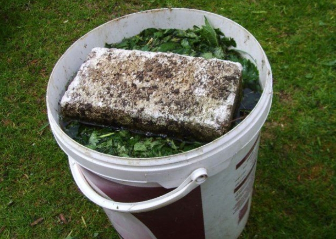 - Подкормка, в основе которой обычные травы, растущие в огороде. Больше всего огородники хвалят окопник, на один килограмм берут ведро воды, нарубленную траву заливают и оставляют для настаивания на одну неделю. Далее одну часть концентрата нужно развести девятью частями воды. Используется для корневого полива и орошения по листу.