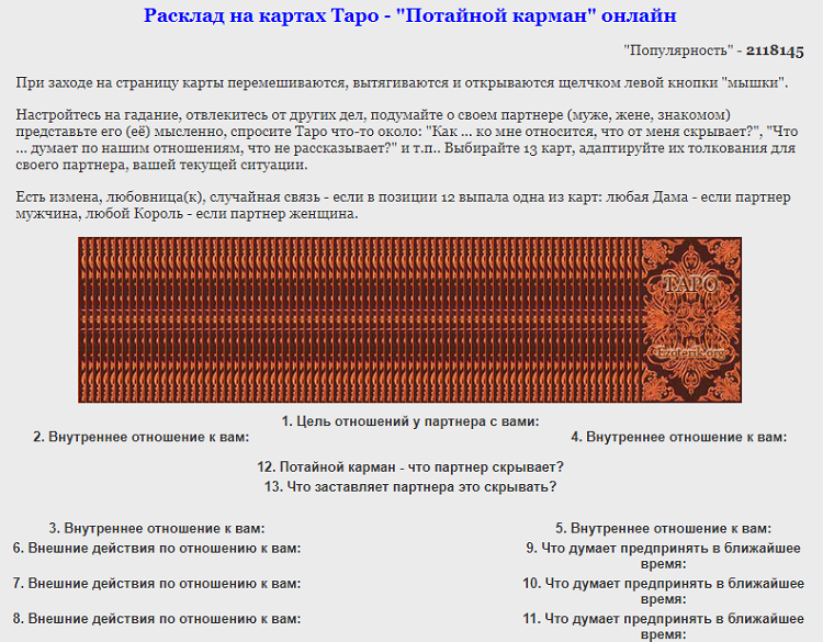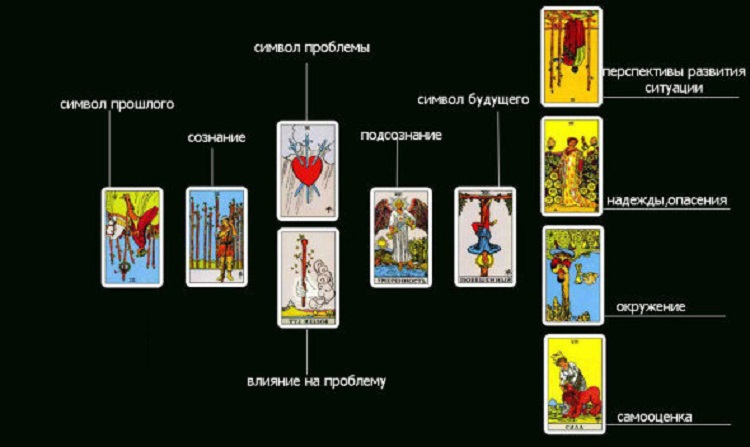 После получения набора карт изучите их. Каждая карта в отдельности имеет свое описание, вместе они дают общую картину, видение сложившейся ситуации. Если сами не можете справиться с трактовкой расклада, не уходя с сайта можно попросить помощи у дежурного администратора.