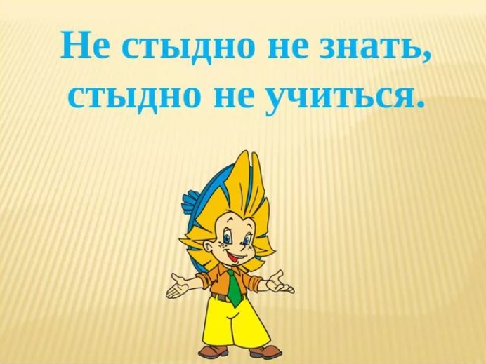 Если человек чего-то не знает, но при этом не является лентяем, стыдиться этого нечего. Стыдно должно быть тому, кто не стремится к знаниям, а следовательно, ничего в жизни добиться не сможет. Образованный человек приносит пользу обществу, вносит вклад в его развитие и получает от этого удовлетворение. Учиться нужно всю жизнь, так как знать всё невозможно.