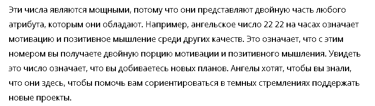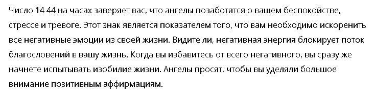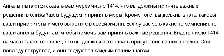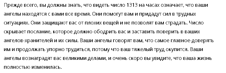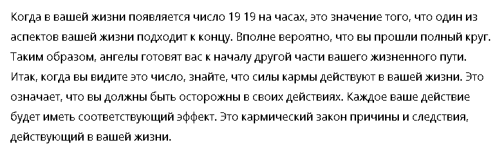 Если данную комбинацию вы увидели первый раз и больше она вам не попадалась, не стоит на это обращать внимание. А вот если числа периодически появляются перед вами, следует знать, что это число ангела. Ангелы решили вам напомнить о духовности в вашей жизни. Кроме этого, ждите хороших перемен.